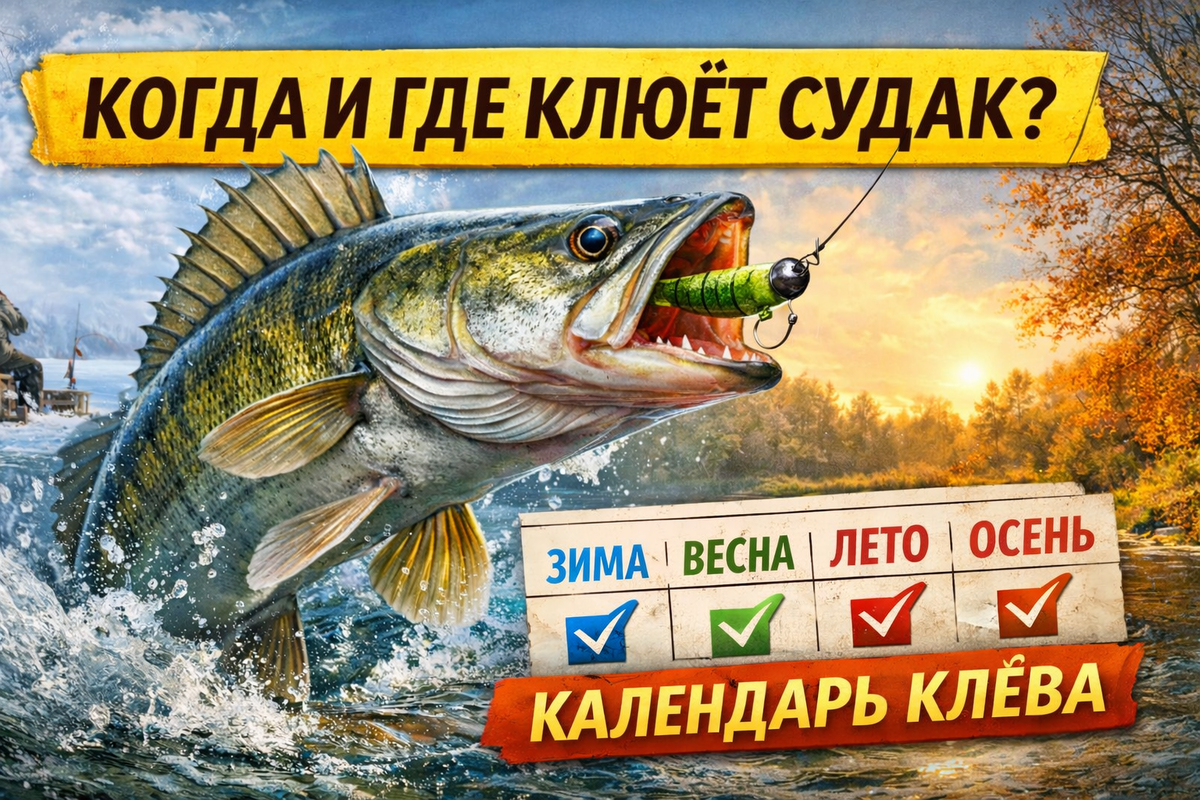 Судак — одна из самых желанных трофейных рыб для спиннингиста и спокуса для тех, кто любит прогнозируемую рыбалку. Он не случайно называется хищником низкой освещённости: любит сумерки, ночи и пасмурную погоду, и это влияет на его активность в разные сезоны года. ❄️ Клёв: умеренный, особенно в периоды оттепели.