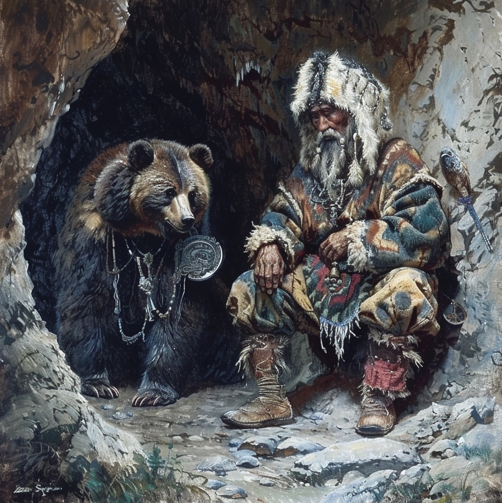 Шаманы в пещерах не живут, но некоторые из них проводят в них свои ритуалы. Рассказ «Путь к Айдану» - как раз и повествует о таком шамане, камлающего в недрах скальных пород. А его спутник медведь терпеливо ждёт, чем всё это закончится. Но вот только реальные ли они? Или это галлюцинации и игра фантазии случайных путников, застигнутых в дороге дождём, вынужденных искать убежище в пещере? «Шаман тем временем поднял над головой бубен и начал медленно ударять по нему колотушкой. Глухие удары, заглушая шум дождя, разносились по пещере. Ритм постепенно ускорялся. Шаман, пританцовывая, начал приближаться. Медведь следом за ним медленно ступал большими лапами. Костер из купюр догорал. Синие язычки пламени едва светили. Пахло жженой бумагой и дымом. Шаман и медведь подходили ближе. Звуки бубна становились все громче и ритмичнее. Уйти от наступающих шамана и медведя можно было только в глубь пещеры. Но что там внутри? Не окажется ли это ловушкой, из которой потом никак нельзя будет выбраться? Н