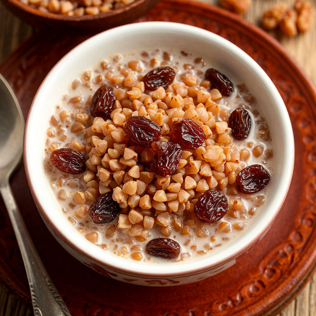 Завтрак (500 ккал): гречневая каша с молоком и изюмом