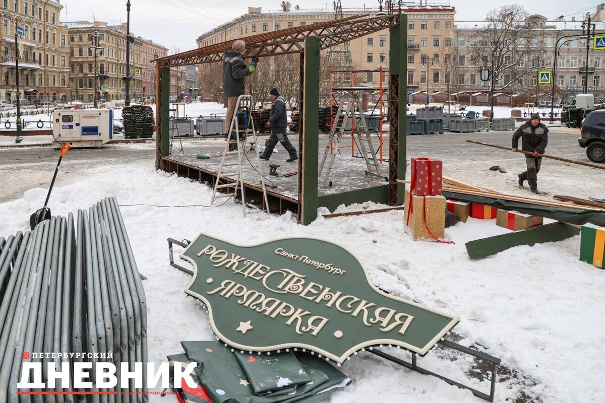 Фото: в Петербурге разбирают декорации и палатки Рождественской ярмарки