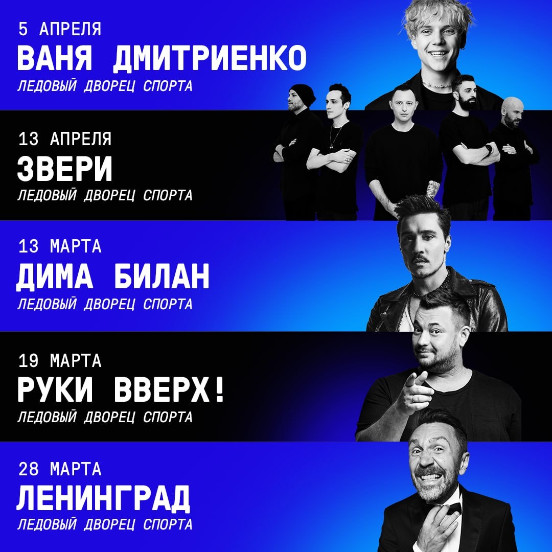🎶 🔥 В Ледовом дворце спорта этой весной выступят сразу несколько топ-артистов: ▶️13 марта — Дима Билан ▶️19 марта — «Руки Вверх!» ▶️28 марта — «Ленинград» ▶️5 апреля — Ваня Дмитриенко ▶️13 апреля — «Звери» Похоже, плейлисты на ближайшие месяцы уже можно не обновлять🎶 На какой концерт идёте? 👍 Север в курсе | Подписаться