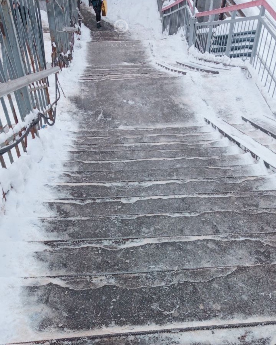 Об этом предупреждает подписчик «Типичное Одинцово»: «Очень скользко и даже перила не всегда помогают, множество людей уже подскальзывались при заходе на платформу и выхода с нее. Где работники, когда у нас буквально ледяная горка вместо нормальных ступеней?». Источник: Открыть