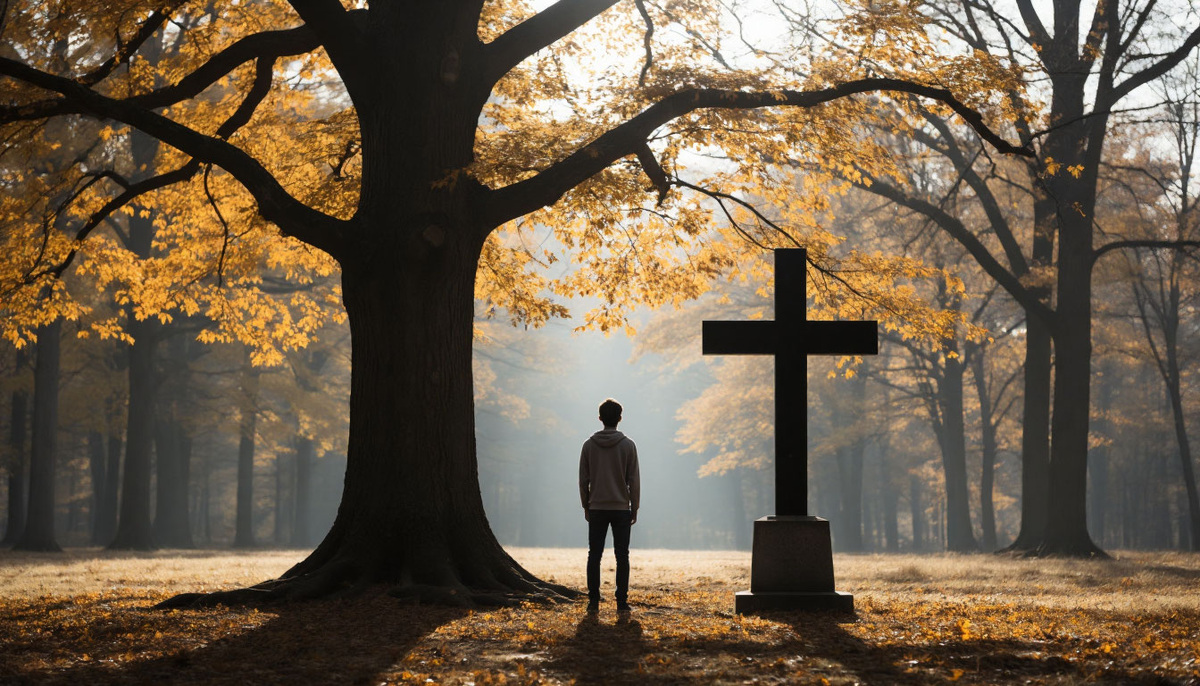 Впереди — то самое дерево. И кривой, почерневший крест. Солнце вдруг гаснет, проглоченное набежавшей тучей. Свет меркнет, краски сползают в серость. Подхожу ближе. Тяну руку. Пальцы касаются шершавой, холодной древесины креста.