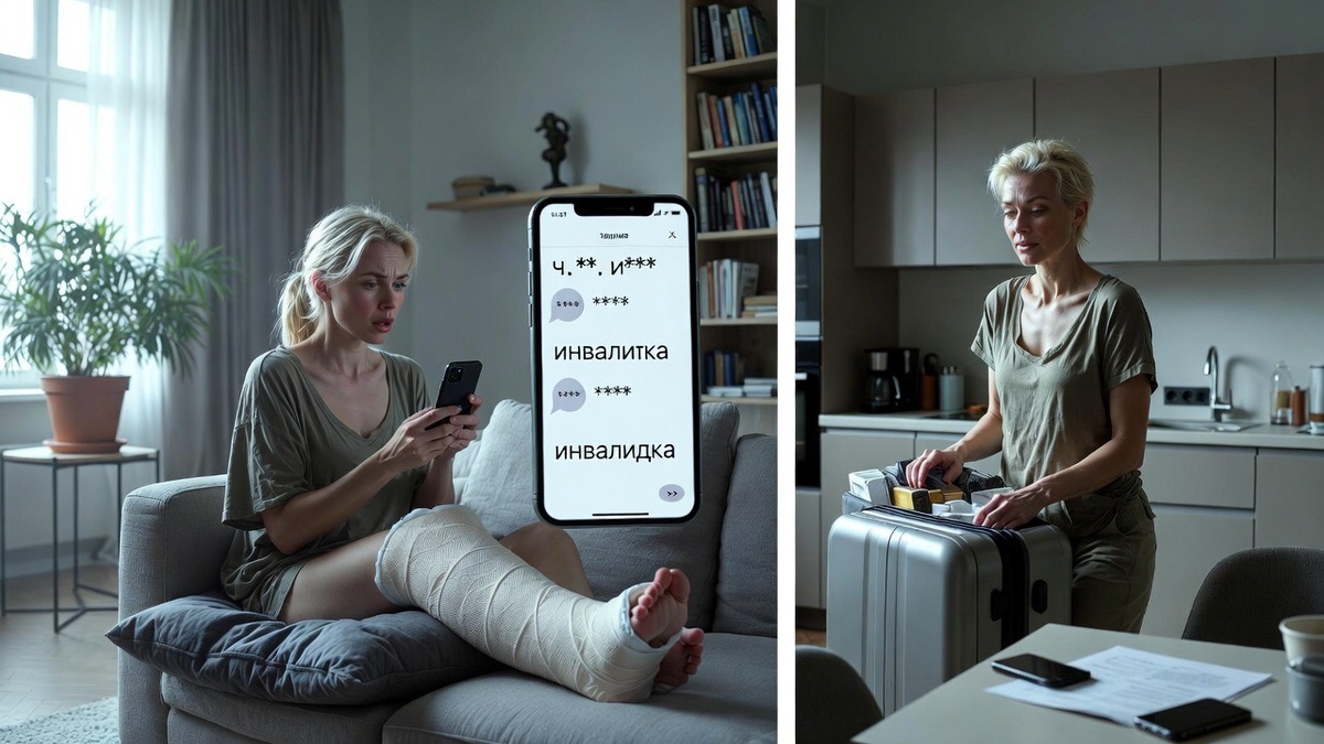Воздух вылетел из легких. Мир сузился до этого светящегося экрана. Мозг отказался понимать. «Инвалидка». Это про меня. Про мою ногу в гипсе. Про меня, его «тихую гавань».