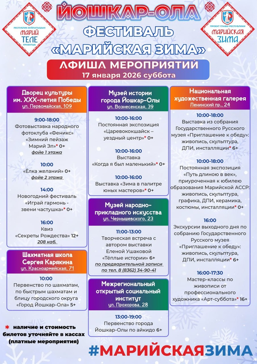 🎉🖼⛸🎄В администрации Йошкар-Олы представили афишу фестиваля «Марийская зима» на предстоящие выходные, 17 и 18 января