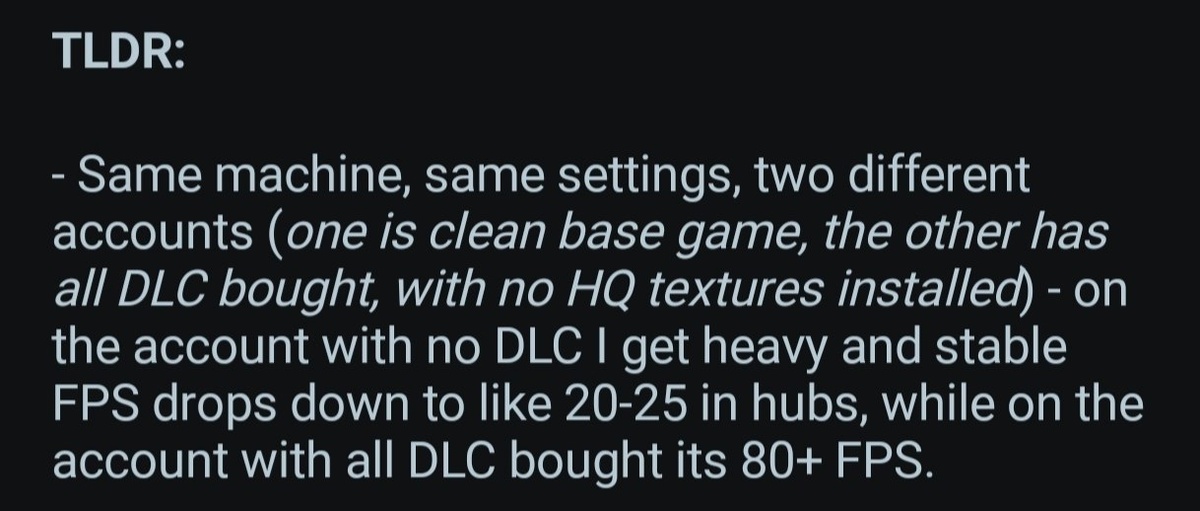 Чел с Реддита de_Tylmarande раскопал, почему MoH Wilds ужасно оптимизирована. Суть проста: чем меньше у вас установлено DLC, тем хуже FPS. Игра постоянно проверяет наличие и подлинность каждого дополнения. Эта проверка невероятно ресурсоёмкая: на аккаунте без DLC FPS падает до 20–25 в хабах, а на аккаунте с полным набором DLC — до 80+. Автор даже эмулировал наличие всех DLC через мод, и производительность мгновенно выросла. А их, так-то, общая стоимость составляет более $500. Если Capcom не исправит проблему он завершит свой мод и выпустит его как полностью открытый исходный код. Capcom пока молчит. Странно, что автор поста пишет про 80+ FPS, если его видео и скриншоты подтверждают, что FPS поднимается и падает на 20–25. Возможно, это в других, менее нагруженных локациях. 🎮 Crunch'N'Play 🎮