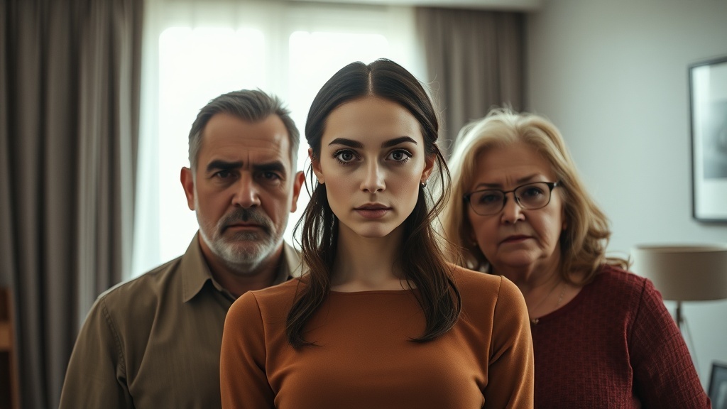 Секунда, другая — никто не шелохнулся. Воздух в комнате стал густым, тяжёлым. На лицах родственников застыло то самое выражение, с которым люди смотрят на пожар в чужом доме: страх и тайное любопытство.