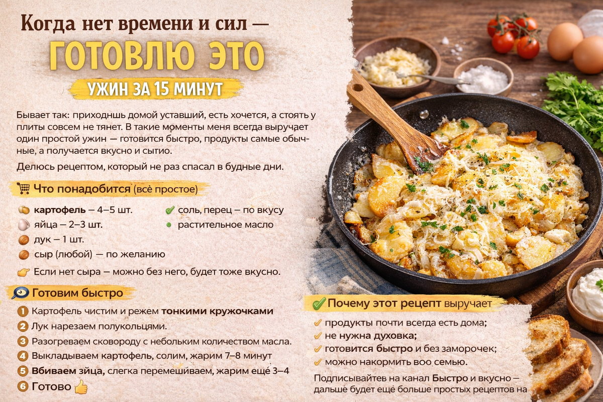 Иногда самый простой ужин оказывается самым вкусным. 👉 Сохраните рецепт, он точно выручит.