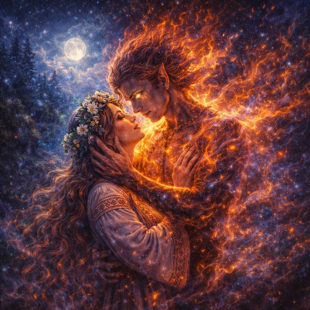 Огонь здесь — не разрушение. Это страсть. Быстрая, яркая, сжигающая без остатка. После встречи с Перелесником человек мог чувствовать: