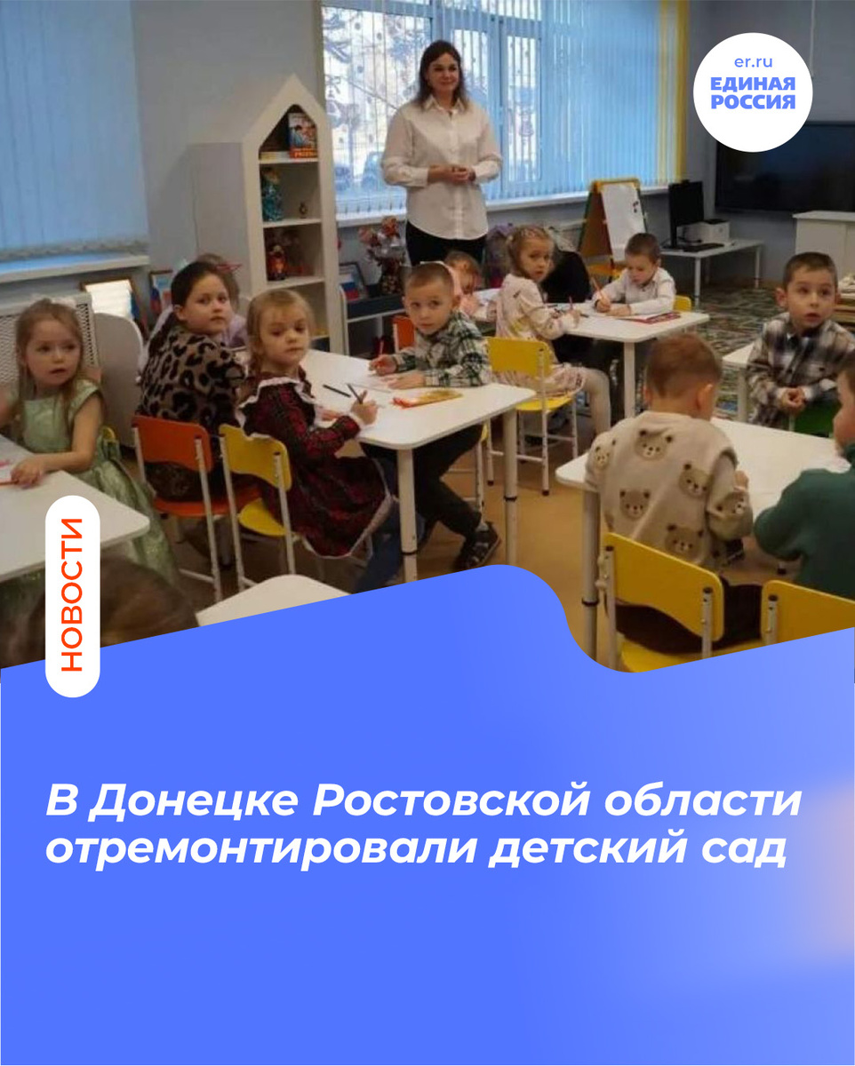 В нем обновили фасад, кровлю, полы, инженерные сети, окна и двери. Объект входил в народную программу «Единой России» 💬 «Очень здорово, что все завершилось, и к Новому году ребятишки, воспитатели, родители получили такой подарок. Спасибо Губернатору Ростовской области Юрию Борисовичу Слюсарю за помощь и поддержку, благодарность, а подрядчикам – за качественную и вовремя выполненную работу», – отметил глава города Роман Кураев.