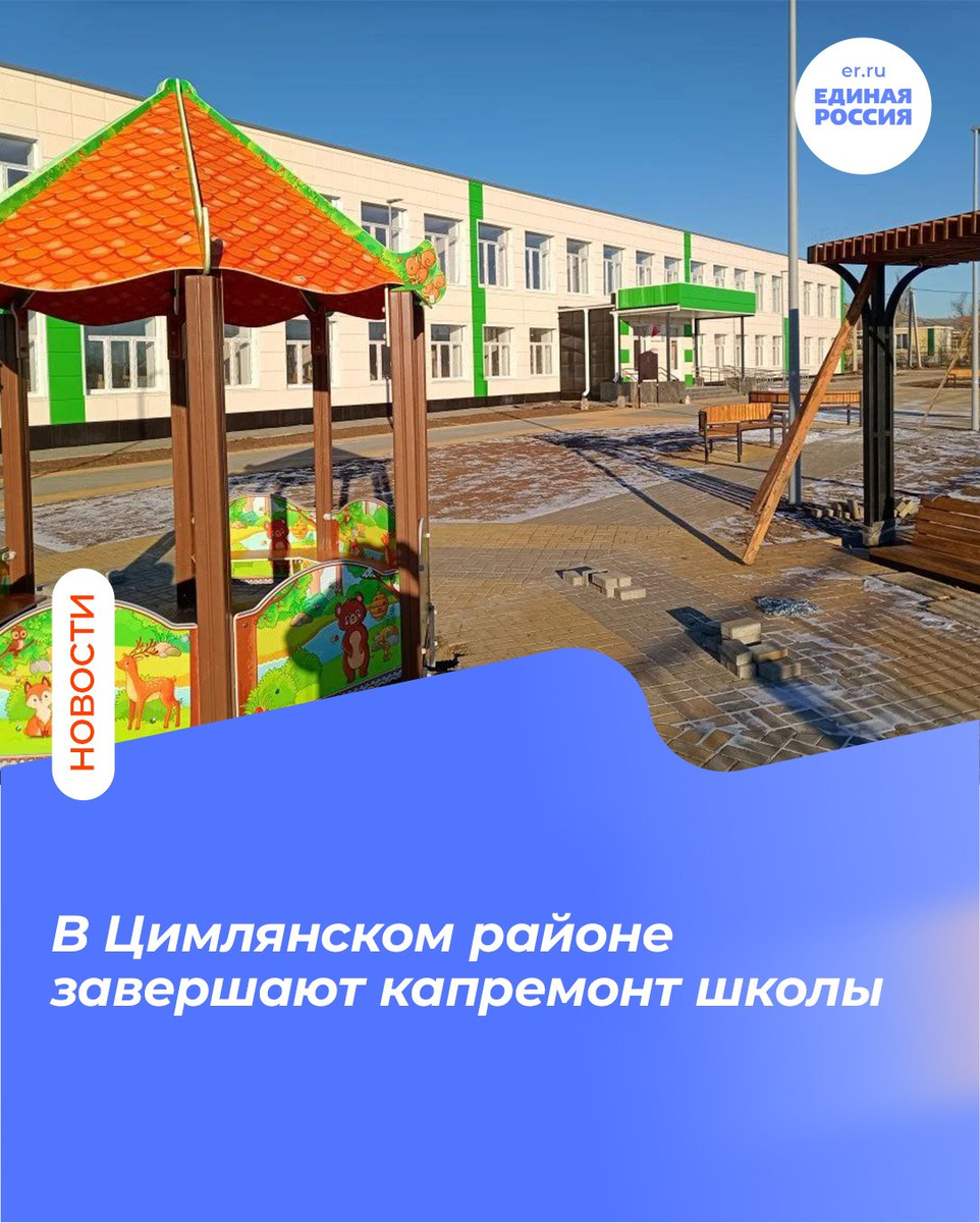 Текущая готовность объекта составляет 99%. Объект в Цимлянском районе включен в народную программу «Единой России». 💬 «Завершение ремонта, инициированного в рамках Народной программы, станет значимым событием не только для образовательного сообщества, но и для всего района», - подчеркнула заместитель секретаря Цимлянского местного отделения Партии Елена Ночевкина.