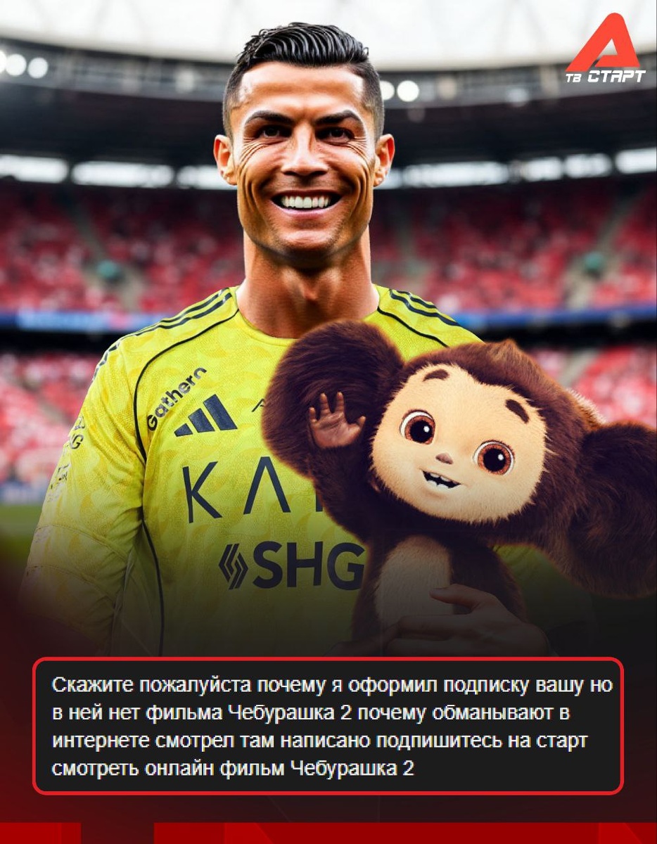Зато есть множество разнообразного контента. От популярнейших видов спорта (футбол, баскетбол и волейбол) до нишевых. Сейчас в прямом эфире фрирайд, а в выходные покажем решающие матчи ЧМ по хоккею с мячом. Ну и, как нам кажется, Криштиану Роналду – достойная замена Чебурашке. Правда ведь? 😉 Подписывайся на ТВ СТАРТ в MAX📲