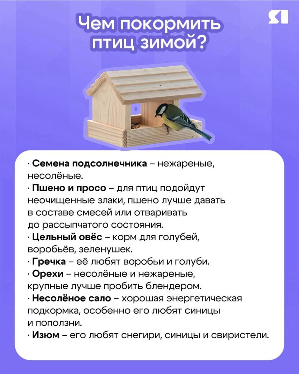Доступ к пище из-за снега и сильных морозов ограничен. Поэтому некоторые птицы вынуждены находится на грани выживания. Важно не забывать заботиться о них в это холодное время года. Чем можно подкармливать птичек – смотрите в карточке⬆️ 💚 Подписаться на «Тelegram» | Подписаться на канал в «МАХ»
