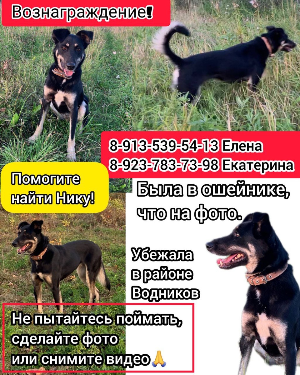 !🆘 😭Убежала 29.12.2025 в районе Водников-Торгашино. ❕На ней ошейник, как на фото, худая, осторожная. 🙏Если вы её увидите, не пытайтесь поймать, снимите видео или фото и позвоните нам. ✅Если вы вдруг приютили её, дайте нам знать, мы очень переживаем. 💔Пожалуйста, не проходите мимо! Возможно, именно рядом с вами замерзает собачка, которую так долго ищут 🙏 8-913-539-54-13 Елена 8-923-783-73-98 Екатерина