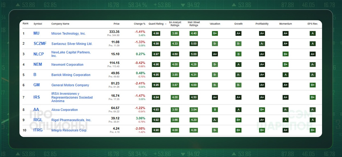 ⤵️ 10 компаний с высоким квантовым рейтингом.