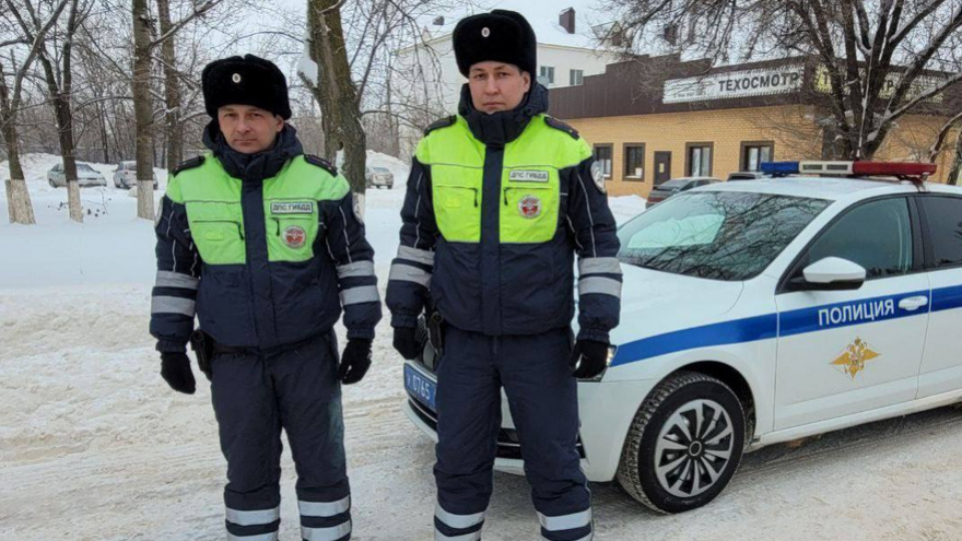 В Марксе полицейские вытолкнули из сугроба застрявшую машину с женщиной