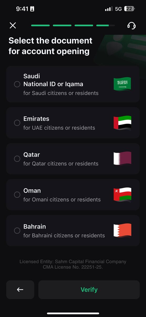 Пытался пройти регистрацию у одного из модных саудовских брокеров, но на этом этапе всё встало.