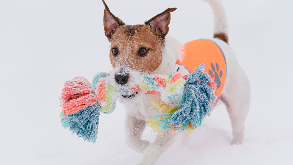 Зимние совместные забавы с питомцем могут стать отличным времяпрепровождением, поскольку будут способствовать поддержанию как вашей, так и его физической активности. Конечно, к этому вопросу нужно подойти ответственно, ориентируясь на погодные условия. Обязательно наденьте на питомца теплый зимний комбинезон. И не забудьте утеплиться сами - так прогулки станут в радость! И еще не можем не напомнить о необходимости защиты лапок от негативного воздействия реагентов - здесь пригодятся ботиночки или мазь на основе воска. Какие же игры можно придумать для зимних прогулок? Абсолютно любые! Например, многие песики обожают бегать по свежевыпавшему снегу – не стоит отказывать любимцу в этом удовольствии. Кстати, дети тоже делают это с удовольствием – так почему бы не совместить приятное с полезным? А еще малыши обожают кататься с горки, а собаки - бежать рядом. тоже неплохое развлечение. Можно придумать и другие веселые игры. К примеру, спрятать в снегу лакомство и предложить хвостику найти уго