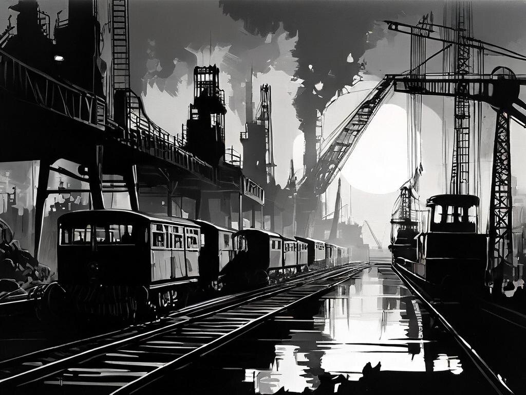 Ночью город звучит честнее. Меньше слов, больше металла. Скрип портальных кранов, короткие сигналы погрузчиков, щелканье аэронавигаторов на мачтах. С реки тянет свеклой и соляркой. На рельсах грузно скрипят тележки, как чирки спичек по железу.