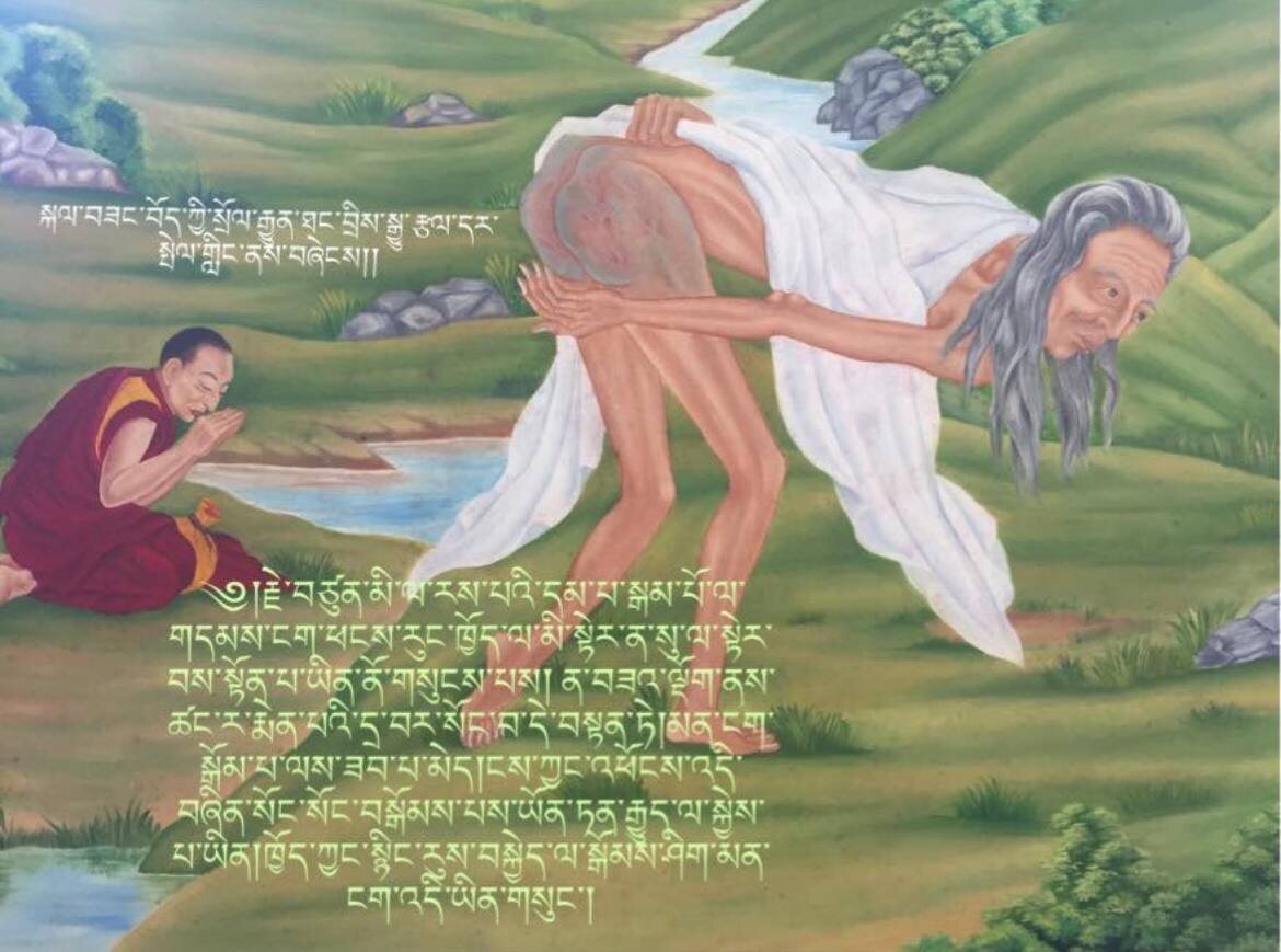 Однажды Миларепа сказал Гампопе, что ему пришла пора уходить: «Ты и в самом деле хороший ученик, — сказал ему Миларепа. — Дам-таки я тебе моё тайное последнее наставление». Гампопа, рад-радёшенек, поклонился учителю девять раз и стал ждать наставлений. А Миларепа повернулся к нему спиной, заголился и показал ему зад. «Ну, видишь?» «Да... вроде бы...», — отвечал Гампопа. «Да ты, как следует, посмотри!» Гампопа никак не мог понять, что же надо увидеть-то. Зад у Миларепы ороговел: не то — мышцы, не то — камень. «Видишь, как я достиг Пробуждения: я сидел и медититровал; и если ты тоже при жизни хочешь пробудиться, рвения у тебя должно быть столько же. Вот моё последнее наставление, и к нему прибавить нечего».