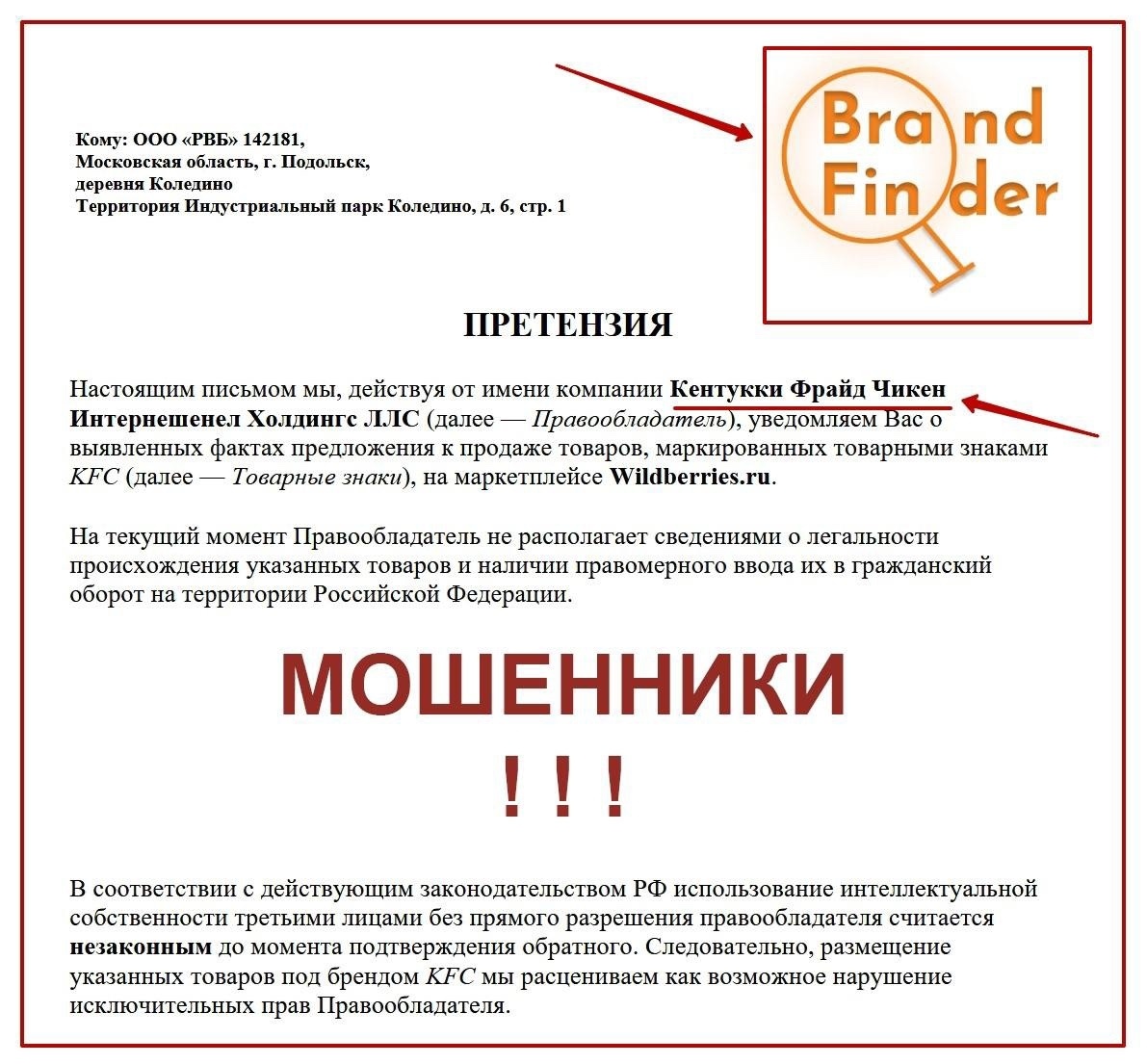 Мошенники рассылают претензии от лица ООО «Бренд Файндер», Brand Finder, Finder CORP PROTECT