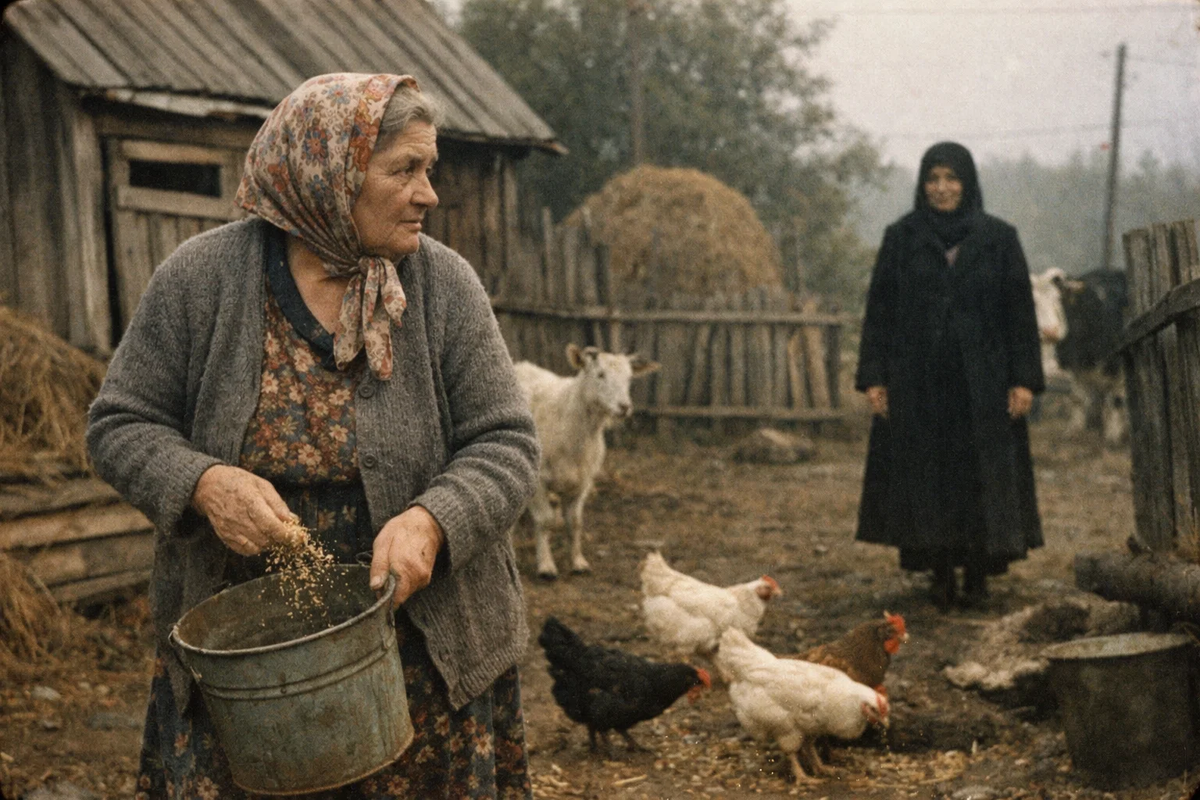 Эта история случилась очень давно, еще в начале 70-х годов. Рассказала её моя бабушка, которая и сама была человеком непростым — обладала даром лечить людей, видела вещие сны и знала тайны, скрытые от обычных глаз. В их деревне жила пожилая пара, муж и жена, обоим уже под семьдесят. Дети их давно разъехались по городам, и старики коротали век вдвоем. Старушка та часто болела, но характер имела железный: никогда не унывала и всегда говорила, что так просто смерти не сдастся, еще повоюет на этой земле. Как-то ранним утром она вышла во двор управляться по хозяйству. Едва забрезжил рассвет, она заметила, что за ней из тени наблюдает женщина среднего возраста, во всем черном. Гостья не была страшной или уродливой, но старушка сразу нутром почуяла, кто это и зачем пришла за ней в такой ранний час. Однако вместо того чтобы испугаться или слечь, она расправила плечи и строго сказала незваной гостье: «Не пойду я сейчас с тобой. Мне надо скотинку покормить, управиться, мужу еду приготовить, во д