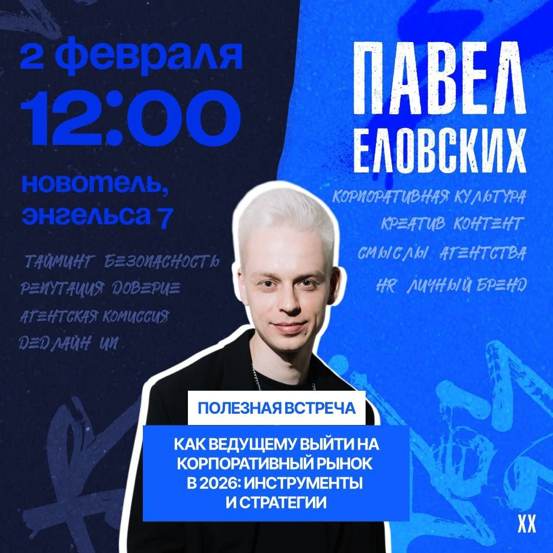 🗣 #2февраля2026 — клик на хештег, и видны все события дня #Екатеринбург #офлайн ⏰ 12:00-16:00 📍 Новотель, ул. Энгельса, 7 💰 Стоимость 5.000 руб ❗️ Регистрация ⚡️На связи Паша Еловских 2 февраля делаю полезную встречу для ведущих Урала ТЕМА: КАК ВЕДУЩЕМУ ВЫЙТИ НА КОРПОРАТИВНЫЙ РЫНОК В 2026: ИНСТРУМЕНТЫ И СТРАТЕГИИ ПРОГРАММА СОСТОИТ ИЗ ТРЕХ БЛОКОВ: 1 БЛОК: СТРАТЕГИЯ ВЫХОДА НА КОРПОРАТИВНЫЙ РЫНОК В 2026 ГОДУ ▪️ Как правильно упаковать себя для работы с агентствами и HR-отделами. ▪️ Как выстраивать коммуникацию с корпоративными ивент-агентствами. ▪️ За какой контент ведущего готовы платить агентства и компании в 2026 году. ▪️ Какие каналы привлечения клиентов актуальны в это нестабильное для бизнеса время. 2 БЛОК: ЮРИДИЧЕСКИЙ ЧЕКАП ▪️ Поговорим с приглашённым ивент-юристом об ИП, самозанятости, договорах, персональных данных и других важных аспектах, которые помогут правильно выстроить финансовые и юридические отношения с компаниями и агентствами в 2026 году 3 БЛОК: РАЗГОВОР С
