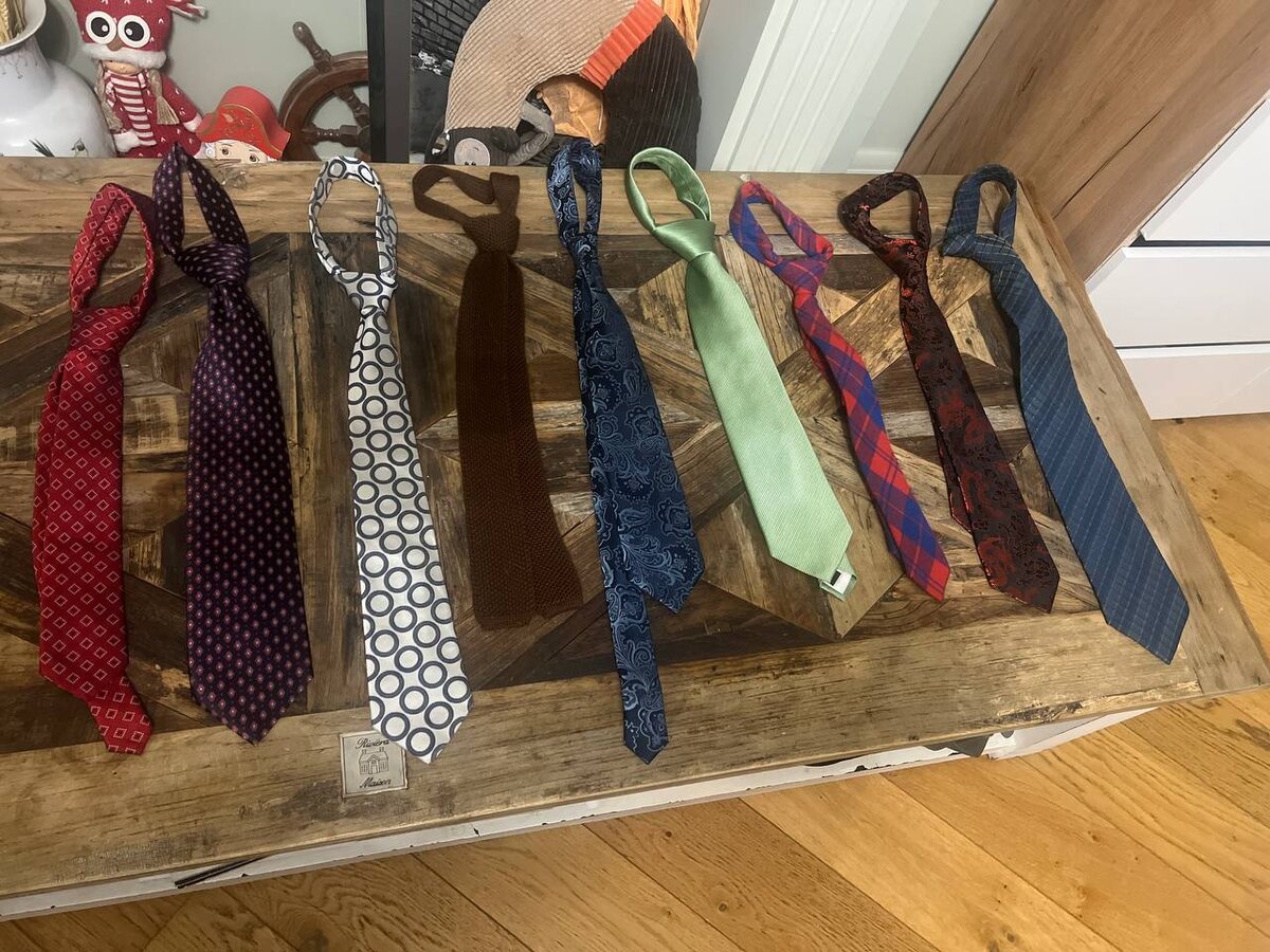 … Гришка сдал первую сессию! Сегодня половине группы поставили 2 и отправили на пересдачу. У него целых 3 и он типо крут. Сыновья, радуемся ! Мне тоже ставили 2 по химии, чтобы потом я стала лучшей. Считайте, что это тот самый путь героя ). Без двоек его не пройти. На фото Гришины галстуки перед экзаменом ). Муки выбора.