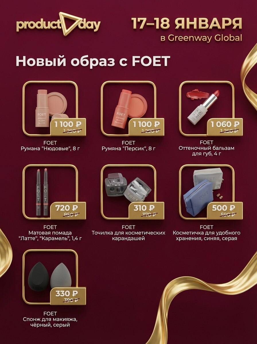 ! 17–18 января - Product Day в Greenway, и он посвящён красоте, настроению и новому образу с FOET. Это та самая косметика, с которой не нужно быть визажистом - всё получается легко, красиво и «дорого» ✨ Рассказываю, что тут за сокровища и почему рука тянется положить в корзину почти всё 👇