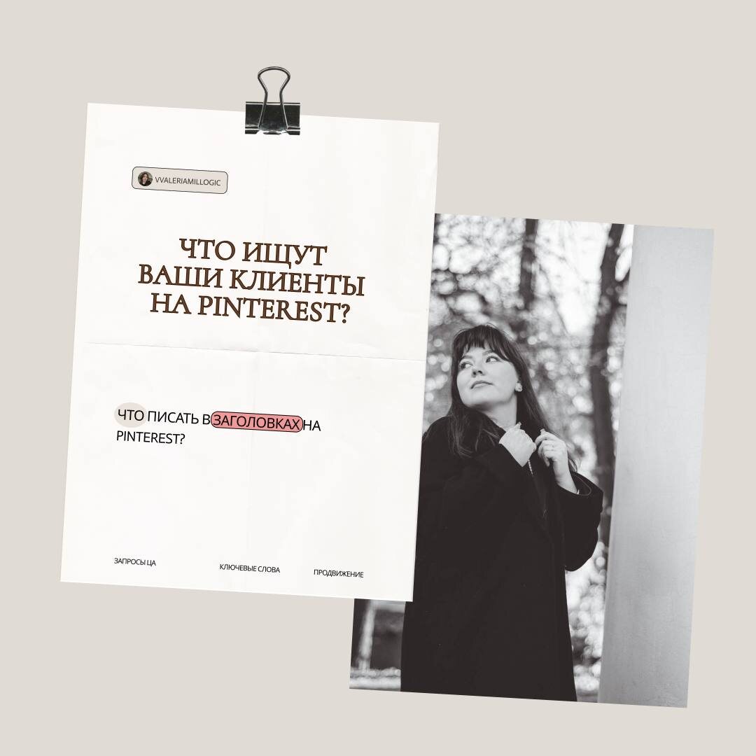 ? и как это использовать в продвижении Если вы попадаете в запрос, то подписчики и клиенты сами приходит к вам Вот примеры запросов, которые люди вбивают в Pinterest👇🏼 — Маркетинг/блогинг: 🔴контент-план для психолога/астролога/врача/художника/дизайнера 🔴идеи постов для личного контента 🔴упаковка блога примеры — Психология/саморазвитие: 🔴выгорание как справиться 🔴как наладить отношения с собой — Парикмахеры/бьюти: 🔴окрашивание на средние волосы 🔴тренды стрижек 2025–2026 🔴идеи причёсок на каждый день — Товары с маркетплейсов/распаковки 🔴готовые образы на весну 🔴обзоры на верхнюю одежду с вб Как вы поняли по примерам, люди ищут ответ на свой конкретный запрос, поэтому тщательно продумываем заголовок и описание публикаций❗️ Когда вы начинаете думать запросами людей, Pinterest начинает работать на вас и активно продвигает ваш аккаунт 📌 📱Я в основном ищу: идеи для маникюра, референсы для съемок, эстетичные фото по цветам, идеи образов, изделия из керамики А что обычно