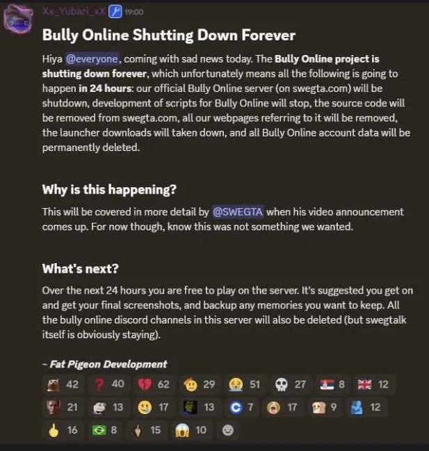 Месяц назад состоялся фанатский релиз Bully Online, а теперь он закрывается без объяснения причин