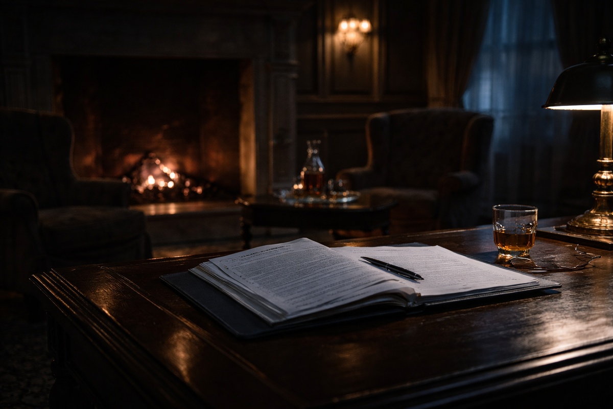Гостиная выглядела иначе, чем в прошлый раз. Темнее, мрачнее. Горел только камин — огонь отбрасывал пляшущие тени на стены.