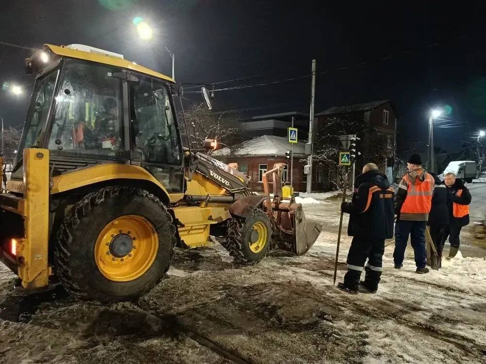Ночные коммунальные бригады очищают улицы Краснодара от мокрого снега
