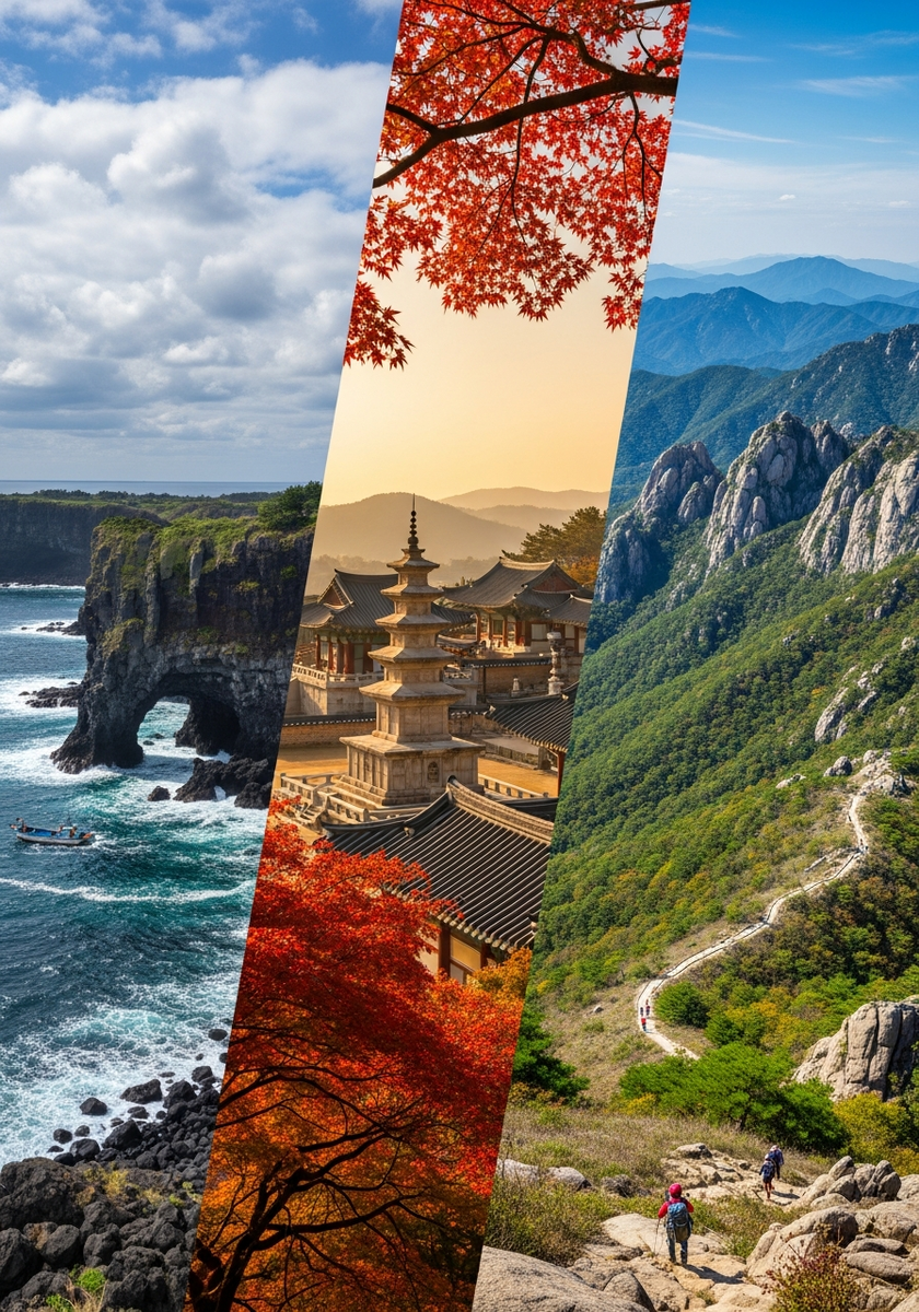 - Где остановиться для посещения достопримечательностей Кореи кроме Сеула? Удобные базы — Пусан для южного побережья и острова Чеджу, Кёнджу для исторических мест, Сокчхо для национального парка Сораксан, из Сувона и Пхаджу легко съездить на день из столицы.