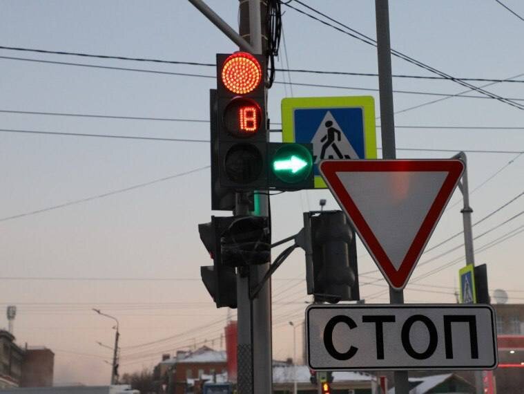 По просьбам водителей на участке обновили организацию проезда. Теперь полосы распределены так: ➡️ правая – только направо, ⬆️ средняя – только прямо, ⬅️ левая – прямо и налево. В ближайшее время здесь появятся дополнительные правые секции светофоров и скорректируют фазы движения – поворачивать направо станет удобнее и быстрее. Фото: Мэр Омска Сергей Шелест