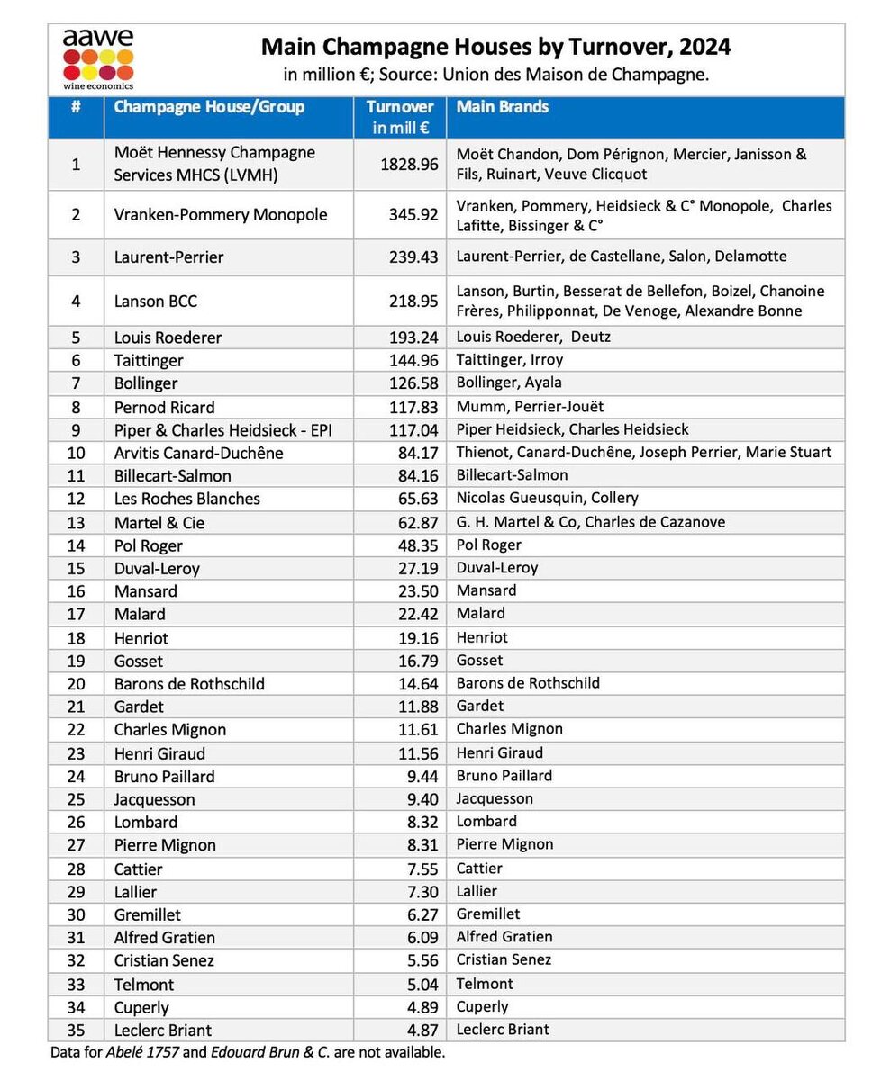 : Сможете назвать пятерку самых богатых производителей Шампани? А десятку? На скрытом фото - топ-35 производителей Шампани с точки зрения оборота в евро за 2024 год.
