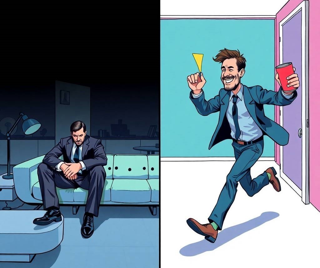 Жил-был Денис. У Дениса было всё: статусный автомобиль, должность «ведущего стратега» в открытом пространстве с зоной коворкинга, и девушка Ира, которая заботилась о нём, как оператор о редком экзотическом растении. Она варила ему кофе на воде из Альп, гладила рубашки паровым станком и планировала его выходные с точностью до минуты: «суббота — гастроужин, воскресенье — спортзал и арт-медитация». Денис был обласкан, ухожен и стратегически выверен. Но иногда, во время арт-медитации, его взгляд застревал не на инсталляции, а на грязном окне, за которым копошились дворники. И в его глазах вспыхивала не зависть, а тоска. Тоска по чему-то очень простому и очень хаотичному. Однажды Ира, чтобы окончательно «гармонизировать его среду», купила суперэргономичный диван за ползарплаты. «Смотри, — сказала она, — в нём шесть положений для релакса, массаж и встроенная колонка! Теперь ты будешь отдыхать правильно!». Денис покорно лёг. Ира включила ему звуки дождя и ушла на онлайн-йогу. А через пятнадца