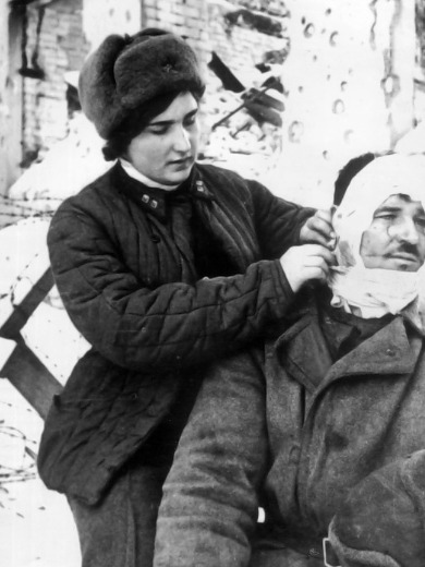 Память о Сталинграде хранят и несколько кадриков кинопленки, подаренных Людмиле Георгиевне — «нашей цыганочке», как ее тогда называли в пулеметном батальоне 13-й гвардейской стрелковой дивизии генерала Родимцева. Статья опубликована в газете ПРАВДА в пятницу, 2 марта 1990 года: У каждого из нас есть свои семейные альбомы, У Людмилы Георгиевны Гумилиной их несколько. В одном из них есть особо ценный для нее снимок, сделанный военным фотокорреспондентом Яковом Рюмкиным в Сталинграде зимой 1942 года. Молоденькая лейтенант медицинской службы перевязывает после боя раненого солдата. Это она. В одном из боев, когда убило пулеметчика Стародубцева и фашисты, воспользовавшись этим, поднялись в атаку, девушка подползла к пулемету, и он снова заговорил, кося огнем врага. За этот бой ее наградили медалью «За отвагу». Память о Сталинграде хранят и несколько кадриков кинопленки, подаренных Людмиле Георгиевне — «нашей цыганочке», как ее тогда называли в пулеметном батальоне 13-й гвардейской стрелково