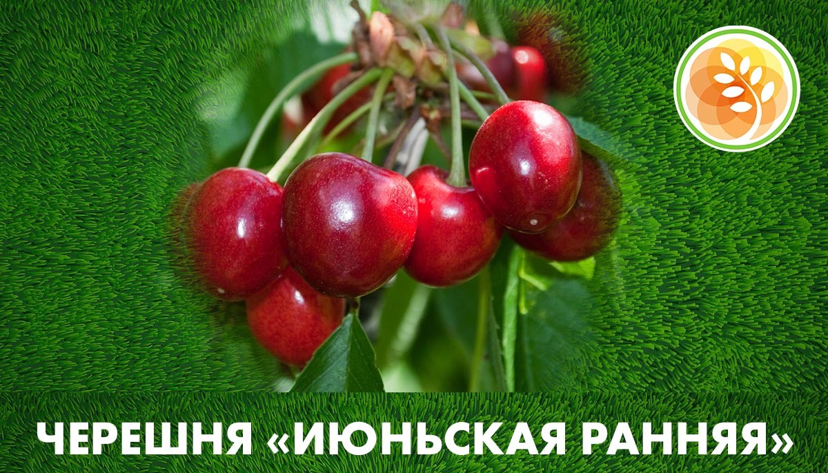 Черешня «Июньская ранняя» — это сильнорослый сорт с шаровидной кроной, ценимый за крупные (7-8 г) темно-красные, сладкие плоды винно-сладкого вкуса с нежной, сочной, полухрящеватой мякотью и хорошей зимостойкостью, относится к ранне-средним и является универсальным. Поскольку «Июньская ранняя» сама часто используется как опылитель, для нее нужны сорта, цветущие в тот же период. Характеристики сорта: Размер: Крупные (7-8 г), широкосердцевидной формы.