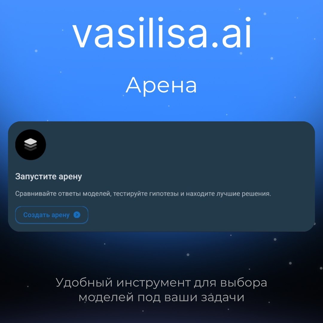 ? В Vasilisa.ai есть режим Арены — где можно отправить запрос сразу нескольким моделям. Зачем это нужно? Представьте, что вы заказываете текст у трех копирайтеров одновременно. Вы получаете несколько вариантов и просто выбираете лучший. Только здесь это работает быстрее, не требует переговоров и неловких объяснений, почему чей-то вариант отклонили. Что вы получаете с Ареной: ⚡️Экономия времени. Один запрос для всех моделей. Больше не нужно копировать один и тот же промт и перепрыгивать между разными приложениями. 😎Лучший результат. Из нескольких готовых вариантов всегда можно выбрать идеальный. ✅ Соответствие целям. Описания моделей — это теория. Арена — это практика на ваших реальных задачах. Сразу видно, какой ИИ лучше пишет код под ваш стек, какой генерирует идеи в вашем стиле или точнее всего анализирует данные. 😇: Режим Арены особенно выручает, когда важен результат: от создания статей и маркетинговых текстов до генерации сложных идей и решения технических задач. 🐈⬛Прио