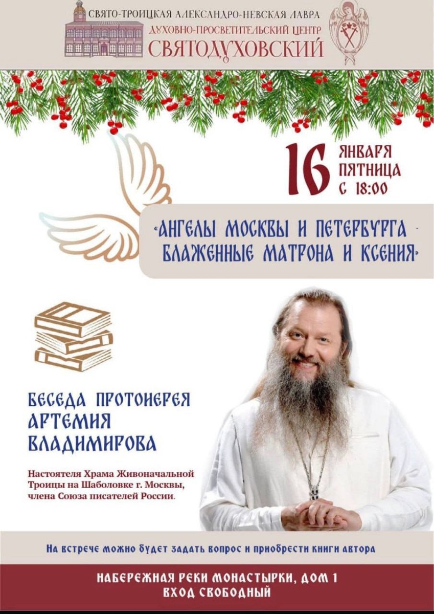 Артемия Владимирова. Посвящен св. Ксении Петербургской и св. Матроне Московской. Книжечки можно приобрести завтра на вечере в Александро-Невской Лавре (просветительских центр, 18-00). В Москве книги отца Артемия продаются в храмовой лавке на Шаболовке. У нас проще всего мне написать, сделаем заказ.