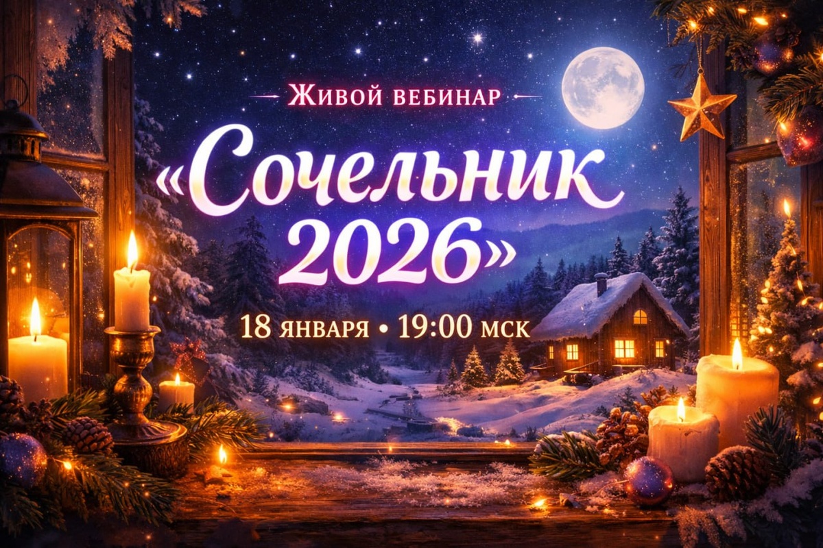 Время Святок - время чудес. У нас сложилась добрая традиция гадать, проводить особые практики и загадывать желания в это время. В Крещенский сочельник 18 января в 19:00мск в очередной раз пройдет волшебный живой вебинар «Сочельник 2026». В этом году мы будем использовать не только энергию периода, в котором предки веками гадали и предсказывали судьбу. Мы используем невероятную комбинацию аспектов на небе. Даже один сильный аспект может влиять на события и судьбу, на результаты практик✨. Мы же в Новолуние и Крещение будем иметь добрый десяток гармоничных аспектов. Такой невероятный энергетический коктейль - большая редкость. Я очень люблю и жду этот вебинар. В магическом круге, где много постоянных ежегодных участников, царят очень красивые энергии, и мы их сознательно усиливаем, проводя специальные практики. Это нужно для концентрации энергии, необходимой для сильных желаний, для мощного старта года⚡️. Каждый участник получает энергетический ресурс для своих целей. В этом году, когда в