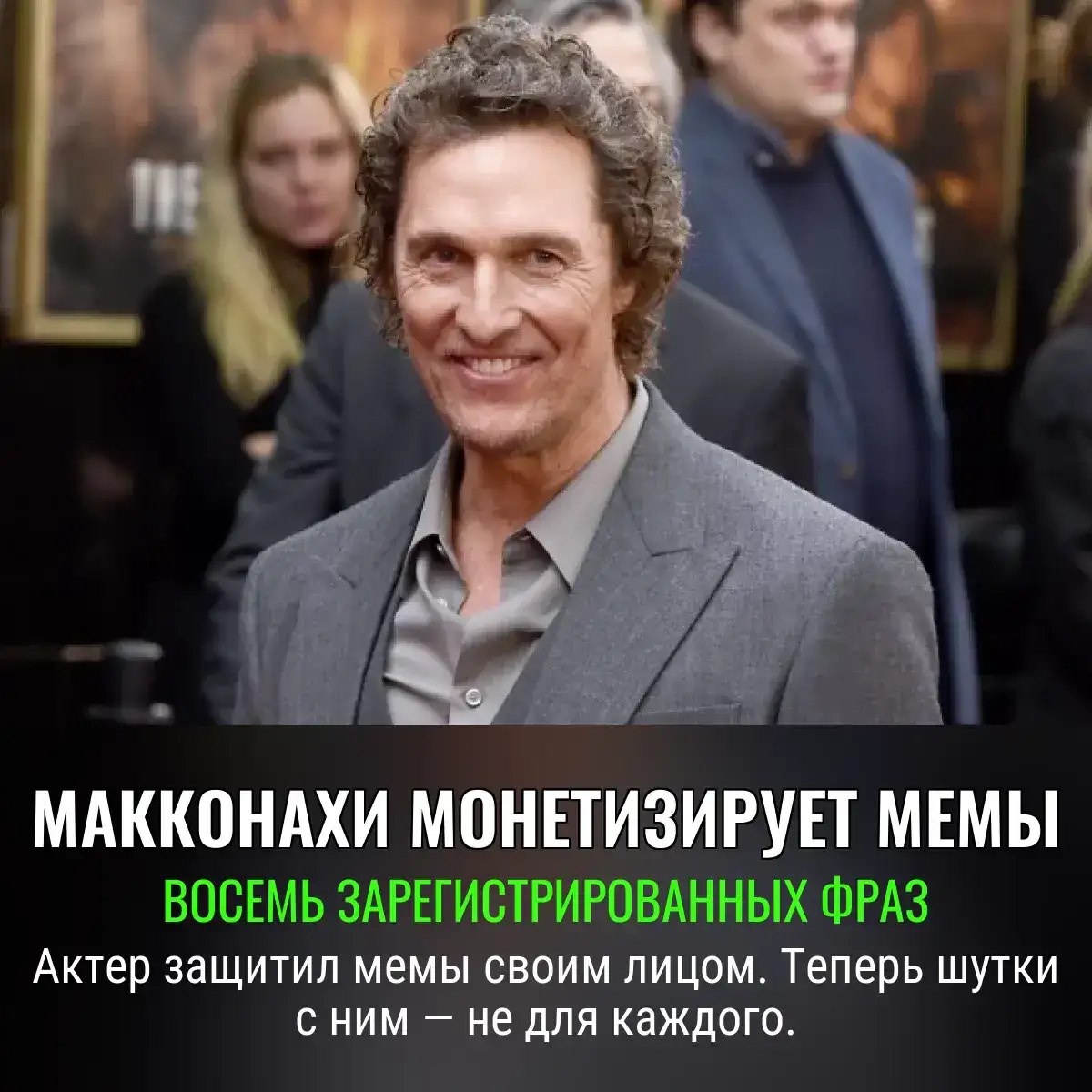 Вот тебе и свободный интернет: Мэттью Макконахи, звезда мемов и кудесник сарказма, решил монетизировать свои культовые фразы и рожи