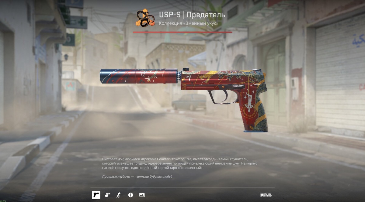Есть не менее красивый красный скин на USP-S в категории «Тайное» – «Подтвержденное убийство». Но на момент написания статьи он стоит в два раза больше, чем «Предатель» (и это, конечно, и есть настоящее предательство). Поэтому советуем приобрести именно последний – в качестве «Прямо с завода» он обойдется вам в 21 171 рубль.