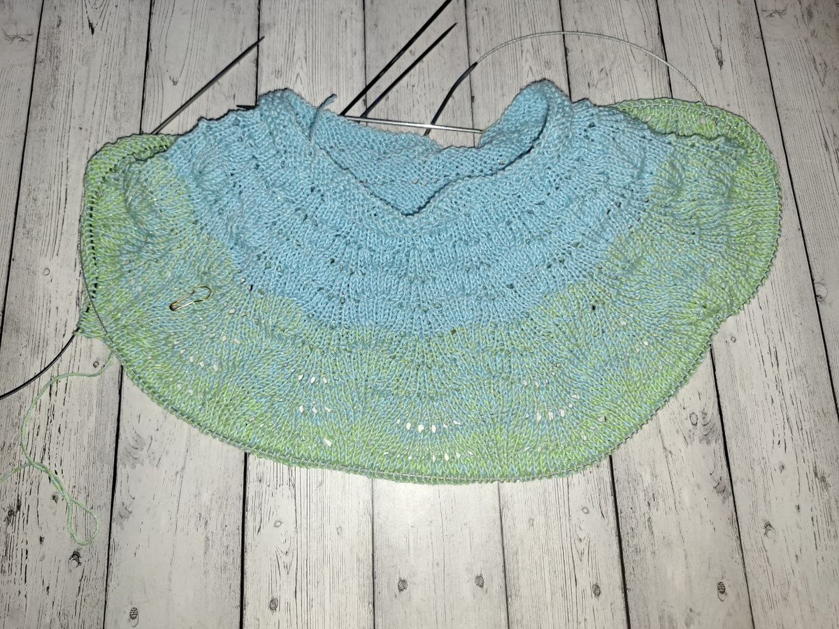 Кто спрашивал как платье поживает ☺️ растёт 😉 почти кокетка готова . Сегодня довяжу и буду разделять, вязать росток и тд.