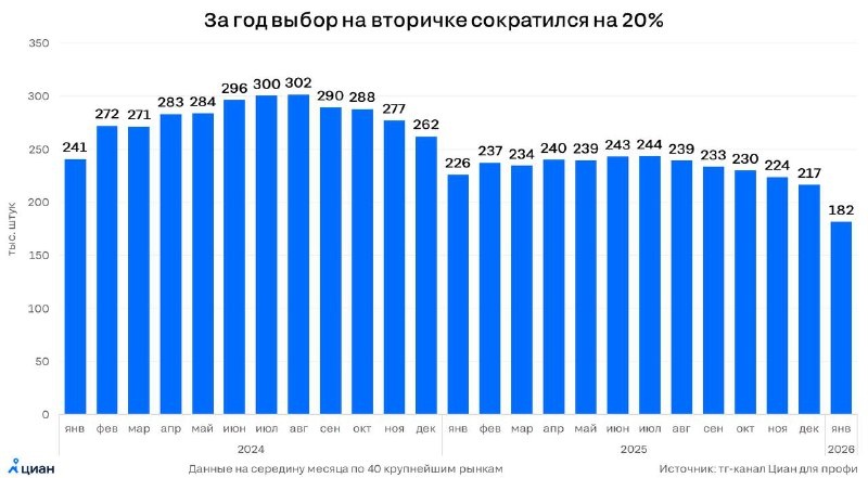 • сохранение высоких темпов продаж; • перевод части квартир на рынок аренды; • сокращение числа квартир, купленных с инвестиционной целью, в недавно сданных домах. ⇒ Елена Бобровская, ведущий аналитик Циан: "В 2026 г. выбор продолжит уменьшаться. Следствием снижения ипотечных ставок может стать смещение фокуса от новостроек в сегмент готового жилья. Там, где, как правило, ниже стоимость, есть возможность поторговаться и сразу заселиться".