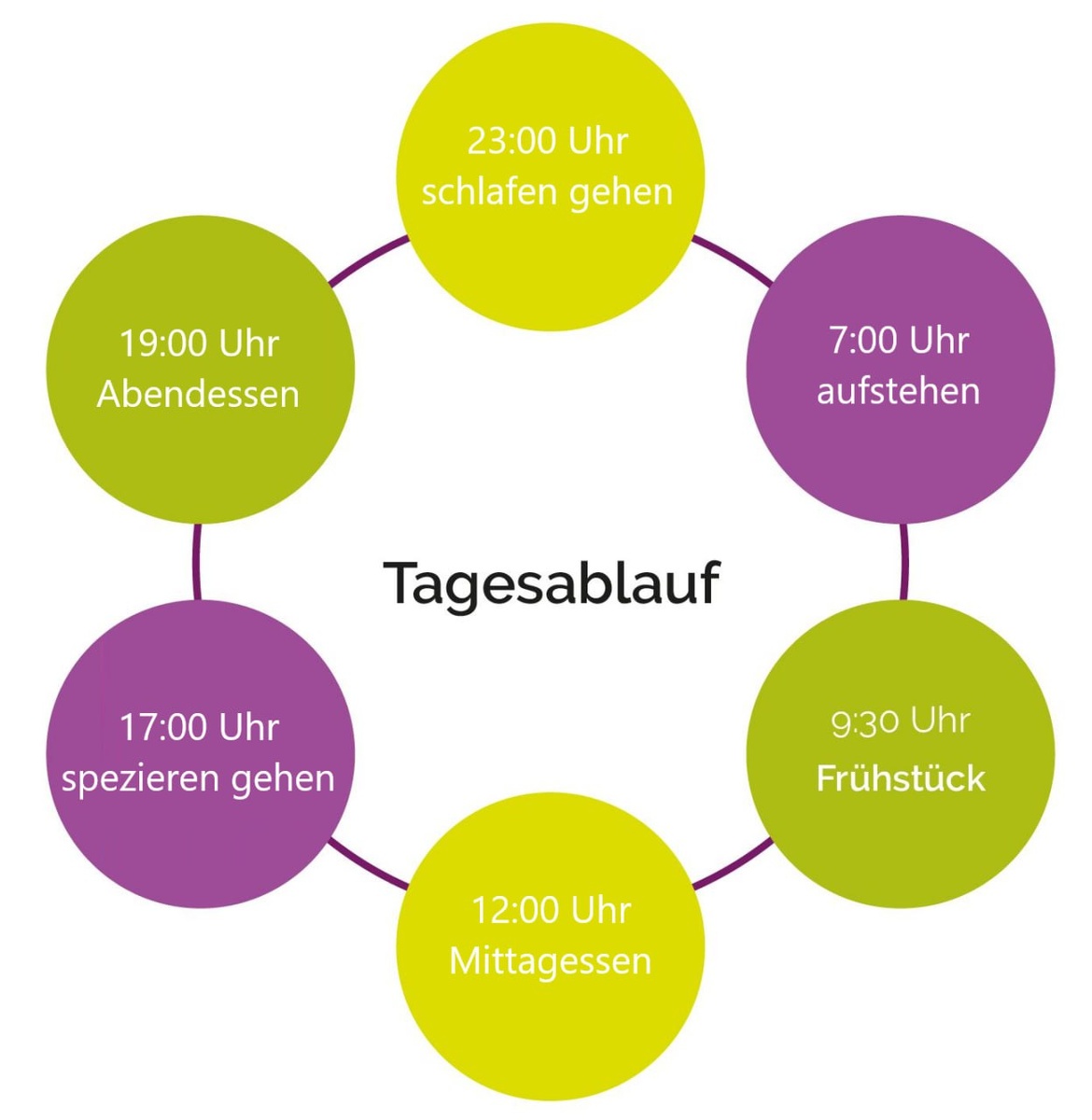 Напиши расписание своего дня на немецком (5–6 предложений).