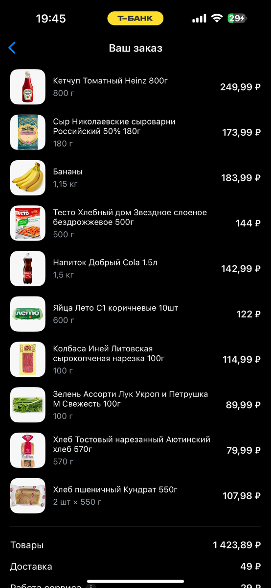 Третья закупка продуктов выглядит вот так. Цифры расходов на продукты за прошлый год показали, что иногда я все таки могу себе позволить и сыр (по акции -30%) и чуток сырокопченной колбасы и готовое тесто. Иногда. Тут закупалась с кэшбеком 12%.