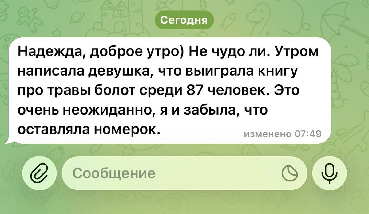 сюрпризы судьбы 🙏 Как отправитель этого сообщения 🥰 Пару дней прорабатывает Родовой финансовый канал и «случайно» выигрывает очень редкую книгу, которую не найти в продаже🔥🔥🔥 из 87 желающих👍👏 Это ли не Чудо?☺️☺️☺️ Благодарю за обратную связь!🙏🙏🙏