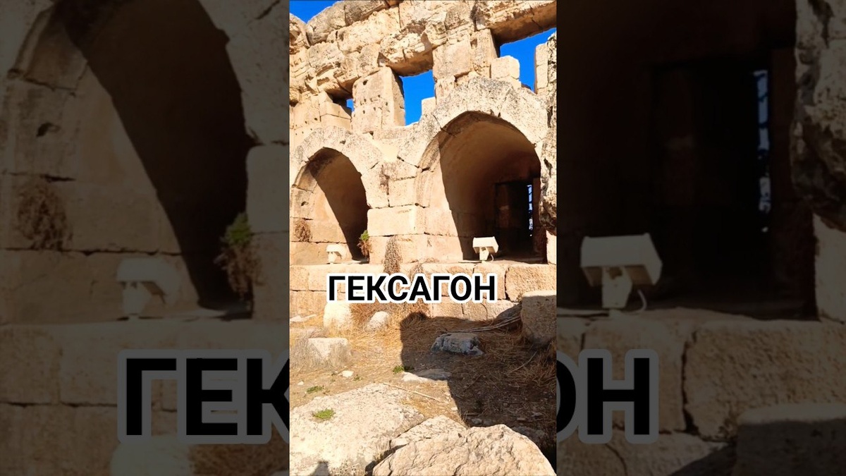 Гексагон или "Шестиугольник" . На переднем плане повреждённый рельеф с крылатой богиней Викторией — Мозаика Прошлого